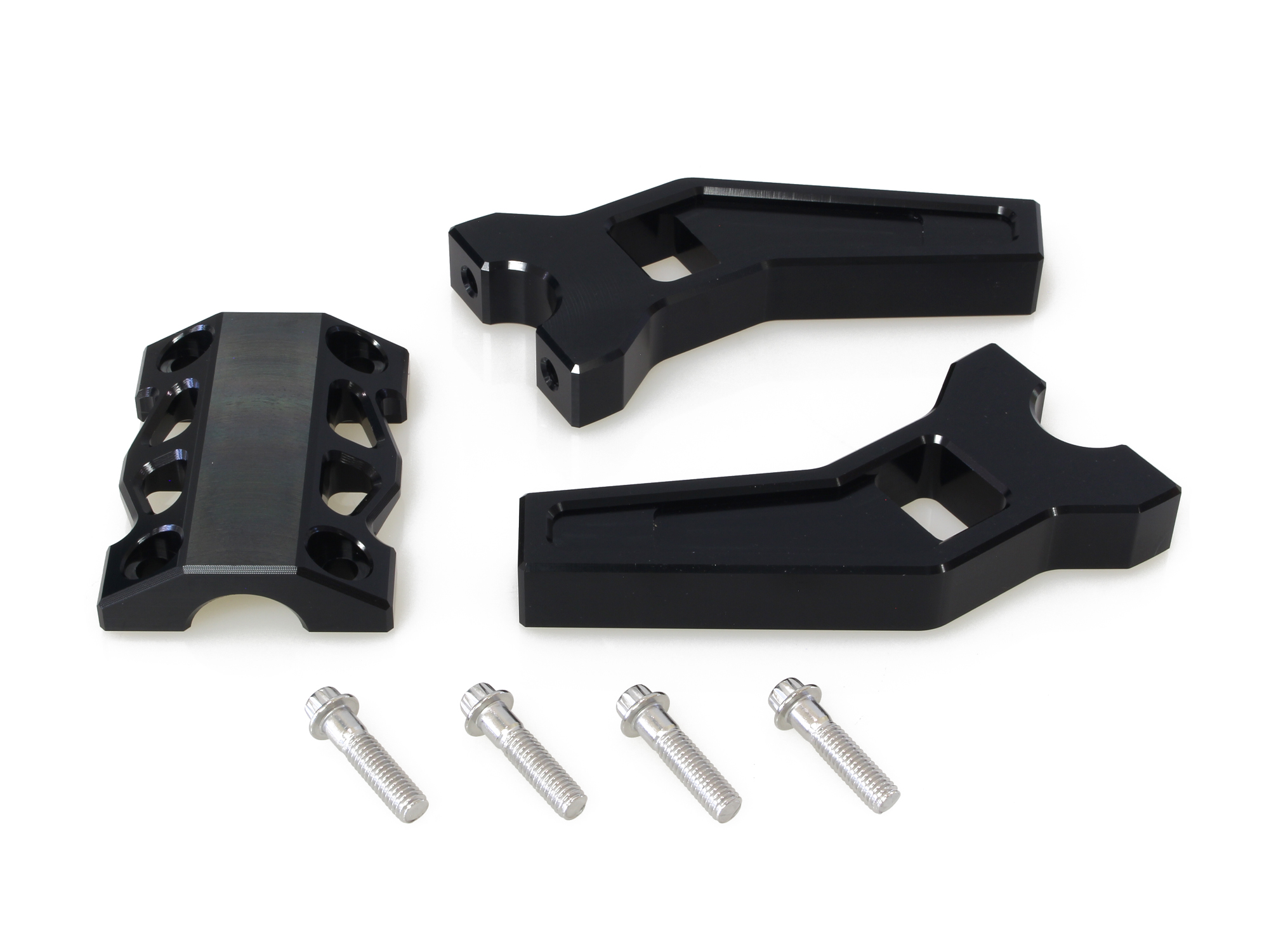 These geometrically shaped risers not only look like a stealth fighter but they offer the same aggressive agility and styling. This set up gets away from the traditional round riser posts we are used too. These risers have more material giving a larger footprint to the triple tree. With more material comes more structural integrity and less cross torsion flex. This product may sound heavy but no worries, these beautiful risers are CNC machined from from billet aluminum, so they are very strong b ut very light. Beefy ARP style 12-point hardware crowns the machined one piece top clamp.