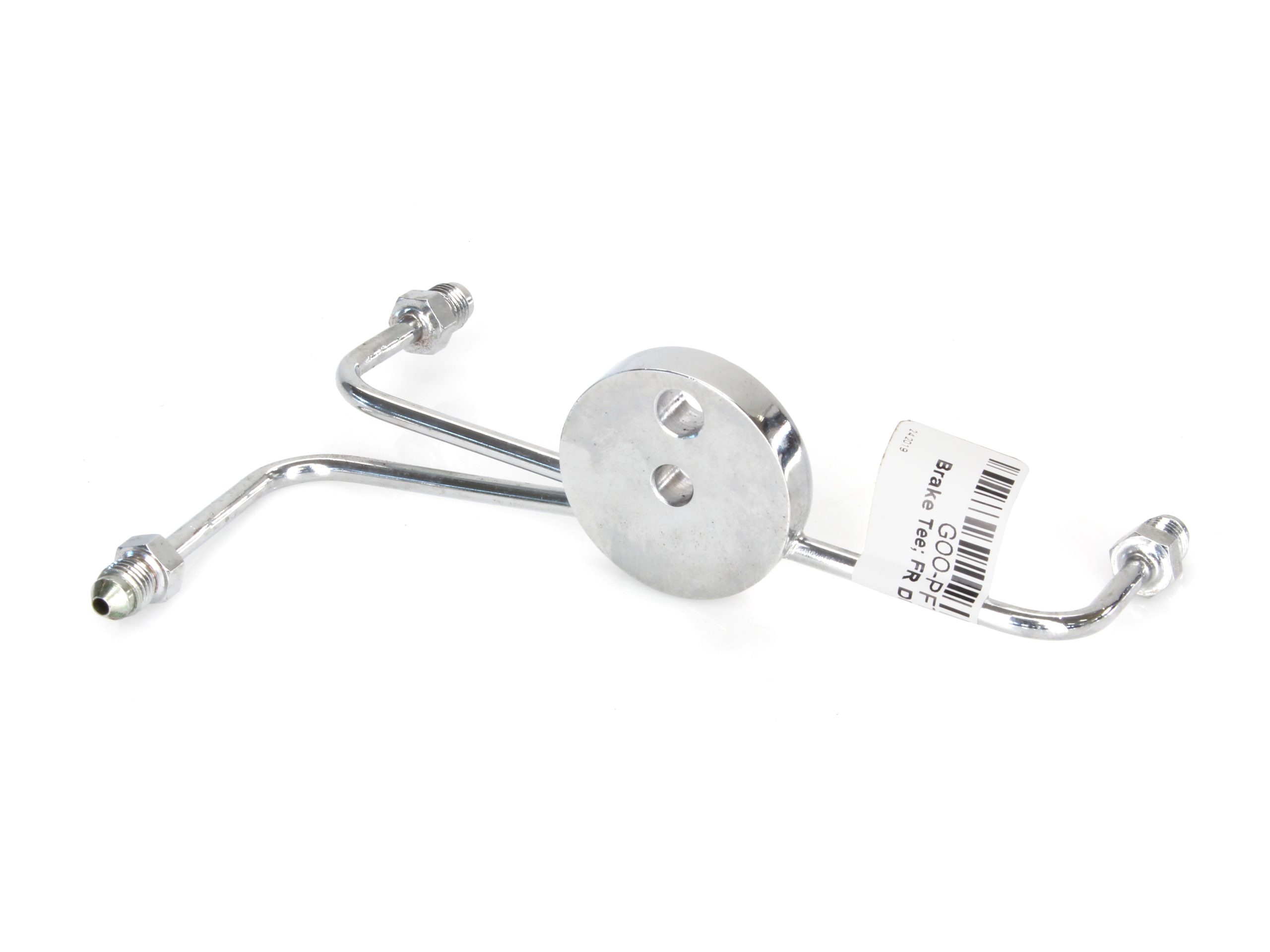 Brake tee upper pipe measures 2.5″ out and 2.5″ up