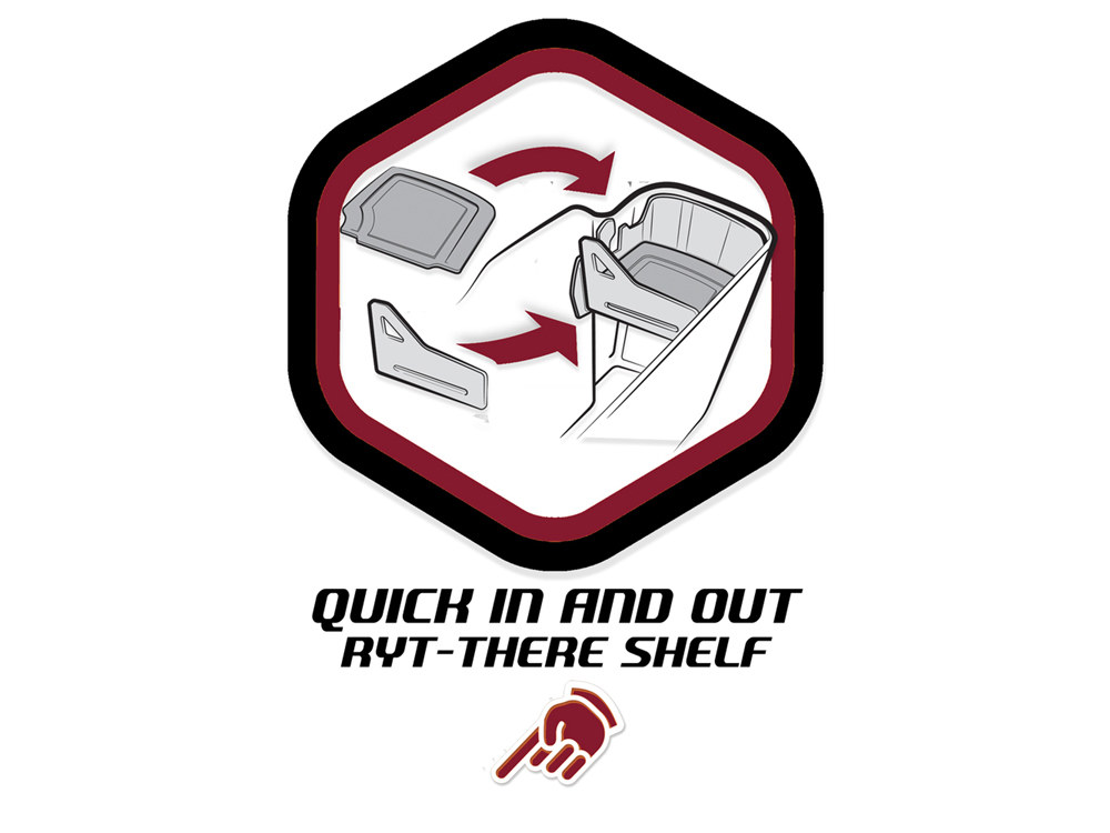 * Ryt-There Shelf is easily removed and easily re-placed without tools or fasteners