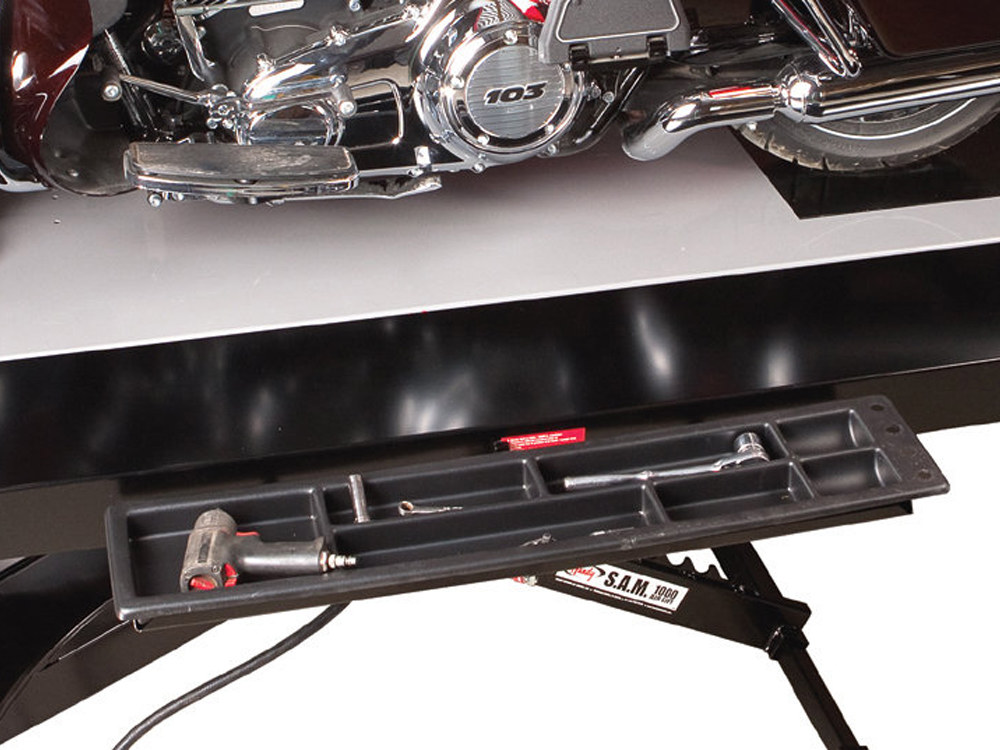 The Tool Tray simplifies how you store your tools while you work. The metal tray holder with polyethylene tray can attach to the sides or ends of the lift table or side extensions with a single clamp. Attach the clamp to the frame and your tools can all rest in one place. As with all Handy products, the Tool Tray is proudly made in the USA.
